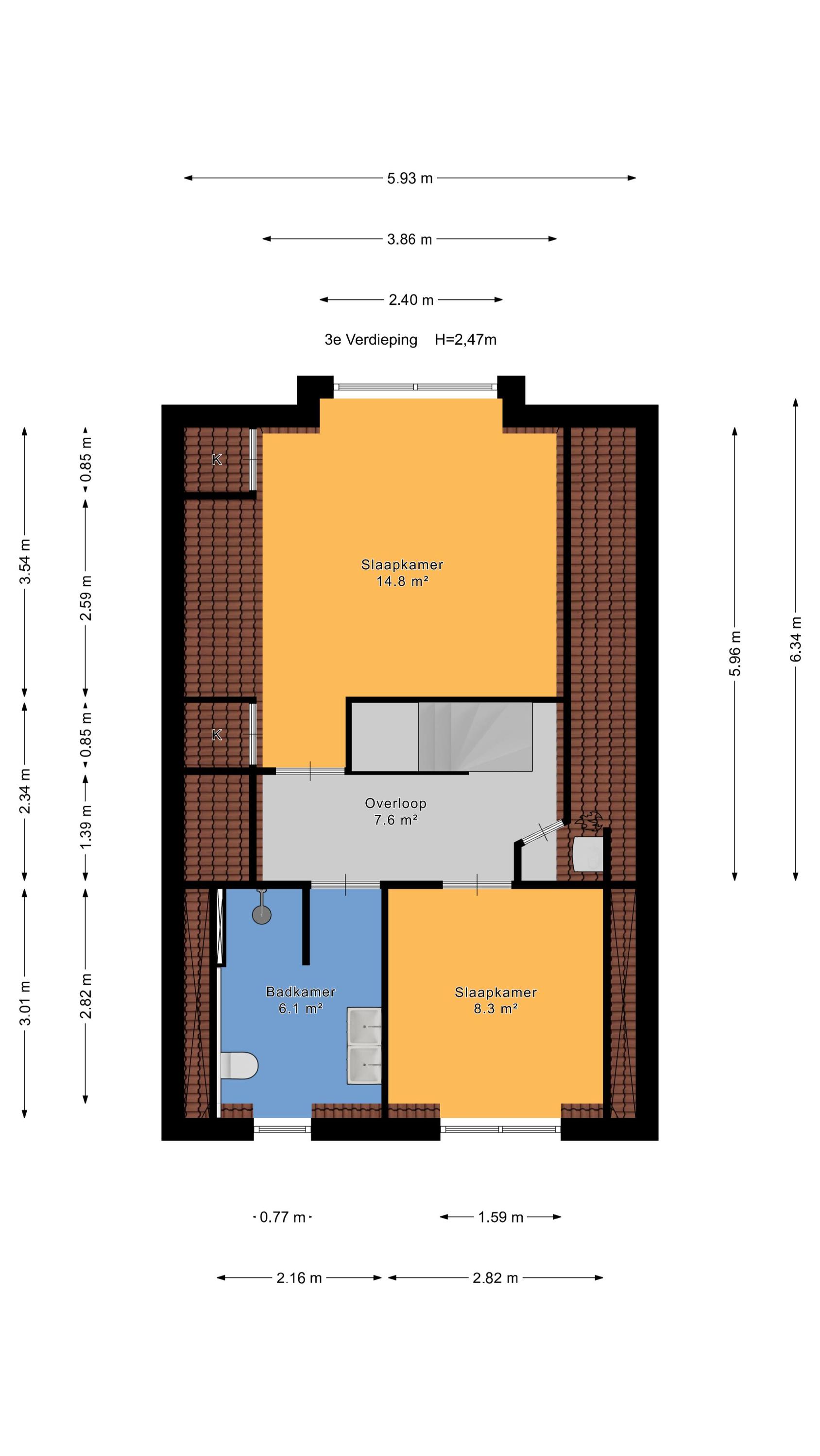 - Woonoppervlakte ca. 106 m² (volgens de branchebrede meetinstructie, afgeleid van de NEN 2580-methode);