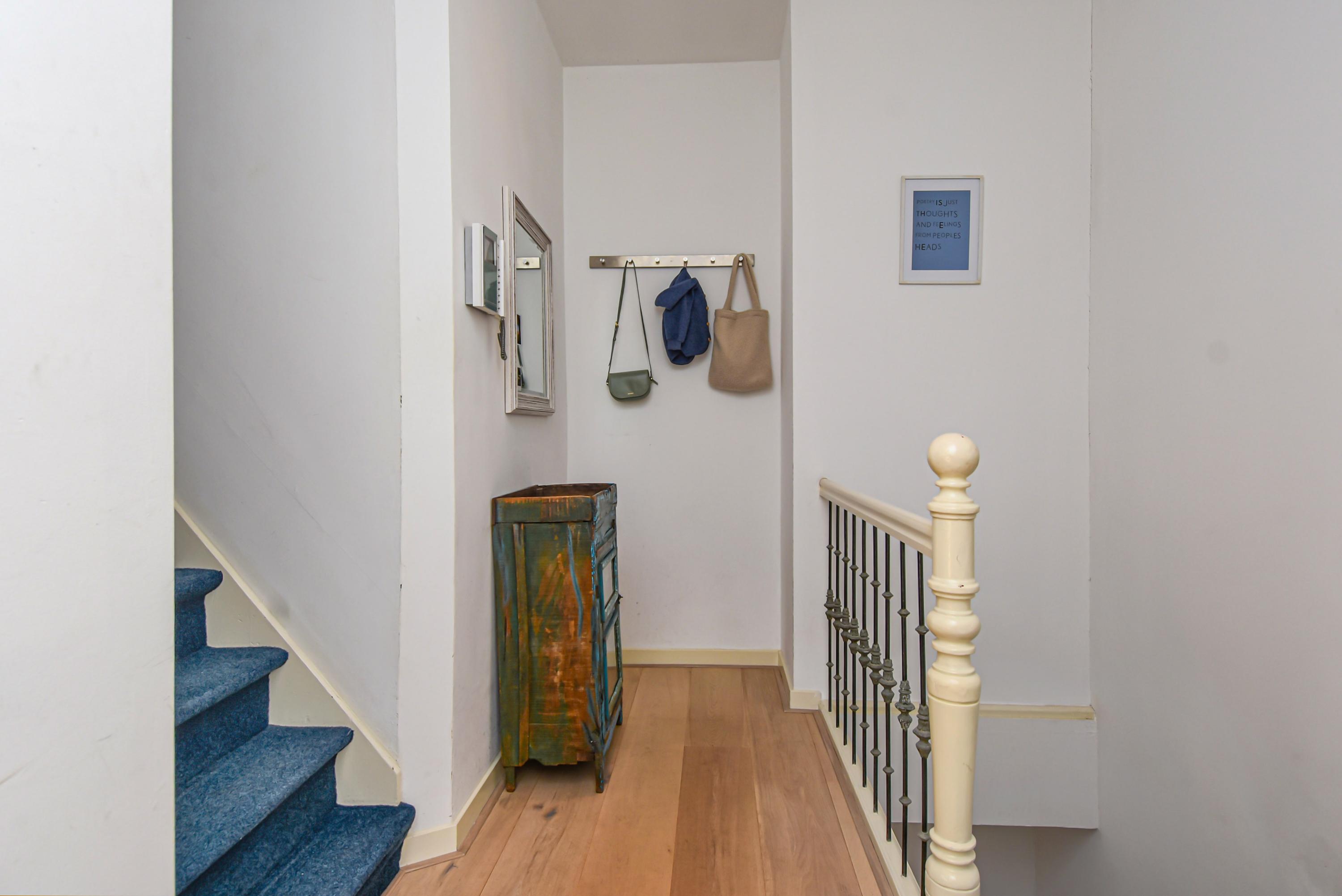 Via de gezamenlijke entree op straatniveau stap je binnen in een halletje, waar de binnentrap je naar de 1e etage brengt.