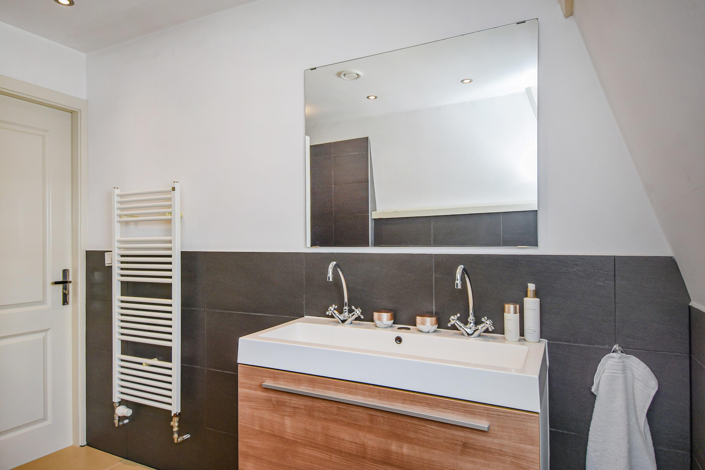 Aan de voorzijde bevindt zich een fijne slaapkamer naast de luxe badkamer welke is uitgerust met een toilet, ruime inloopdouche, dubbele wastafel en designradiator. Aan de achterzijde ligt een charmante, lichte ruime slaapkamer met vaste kast.