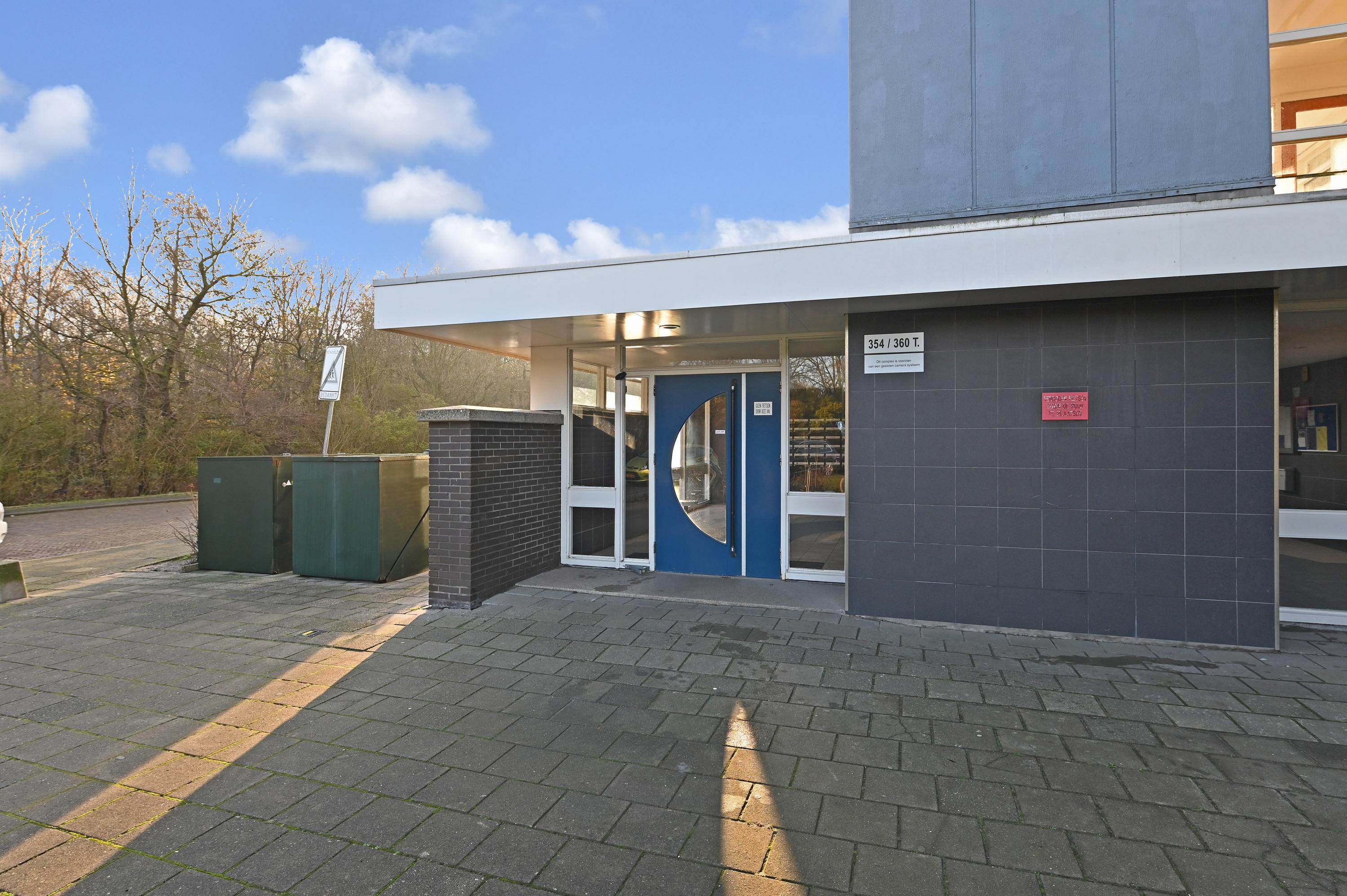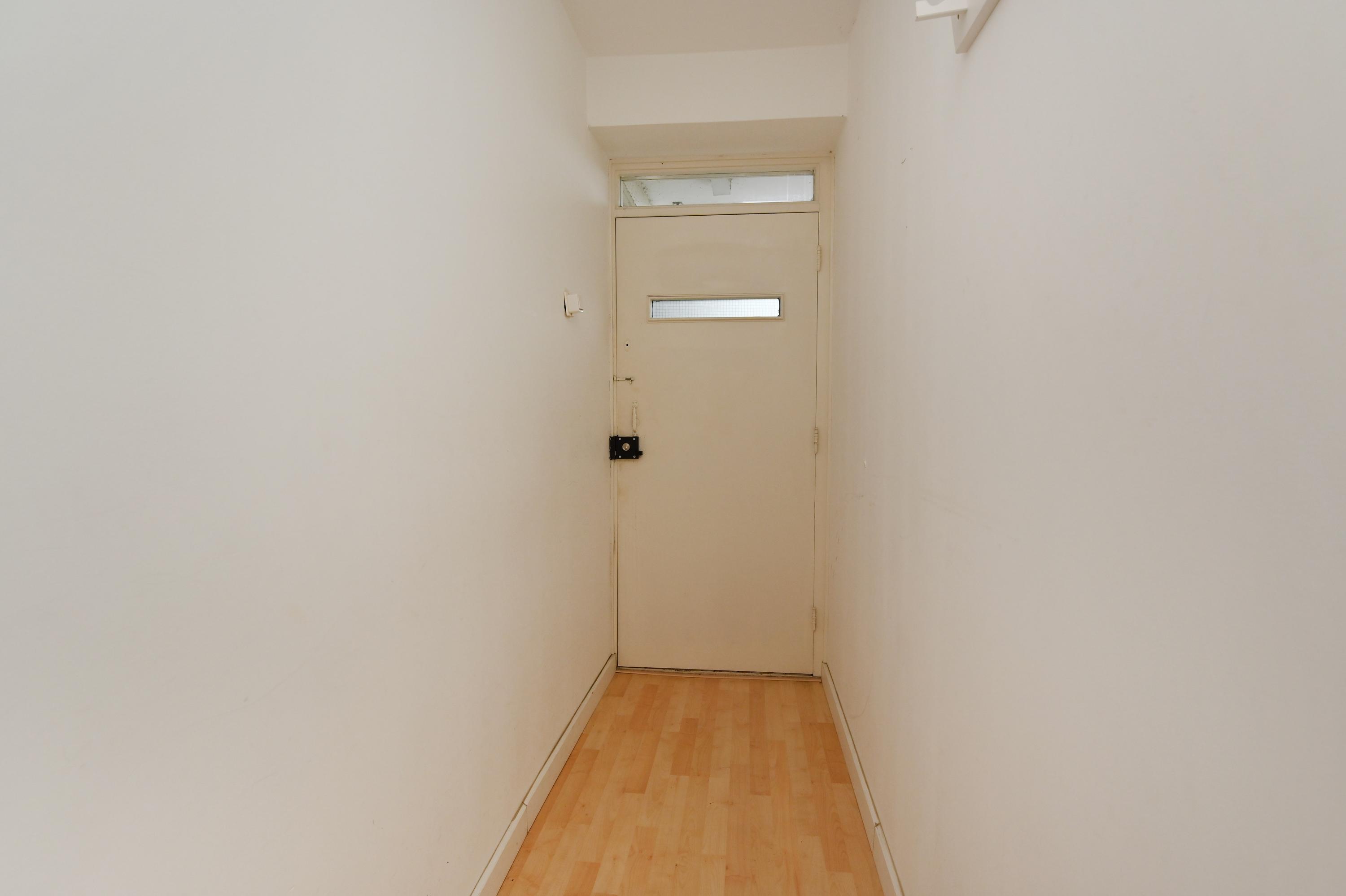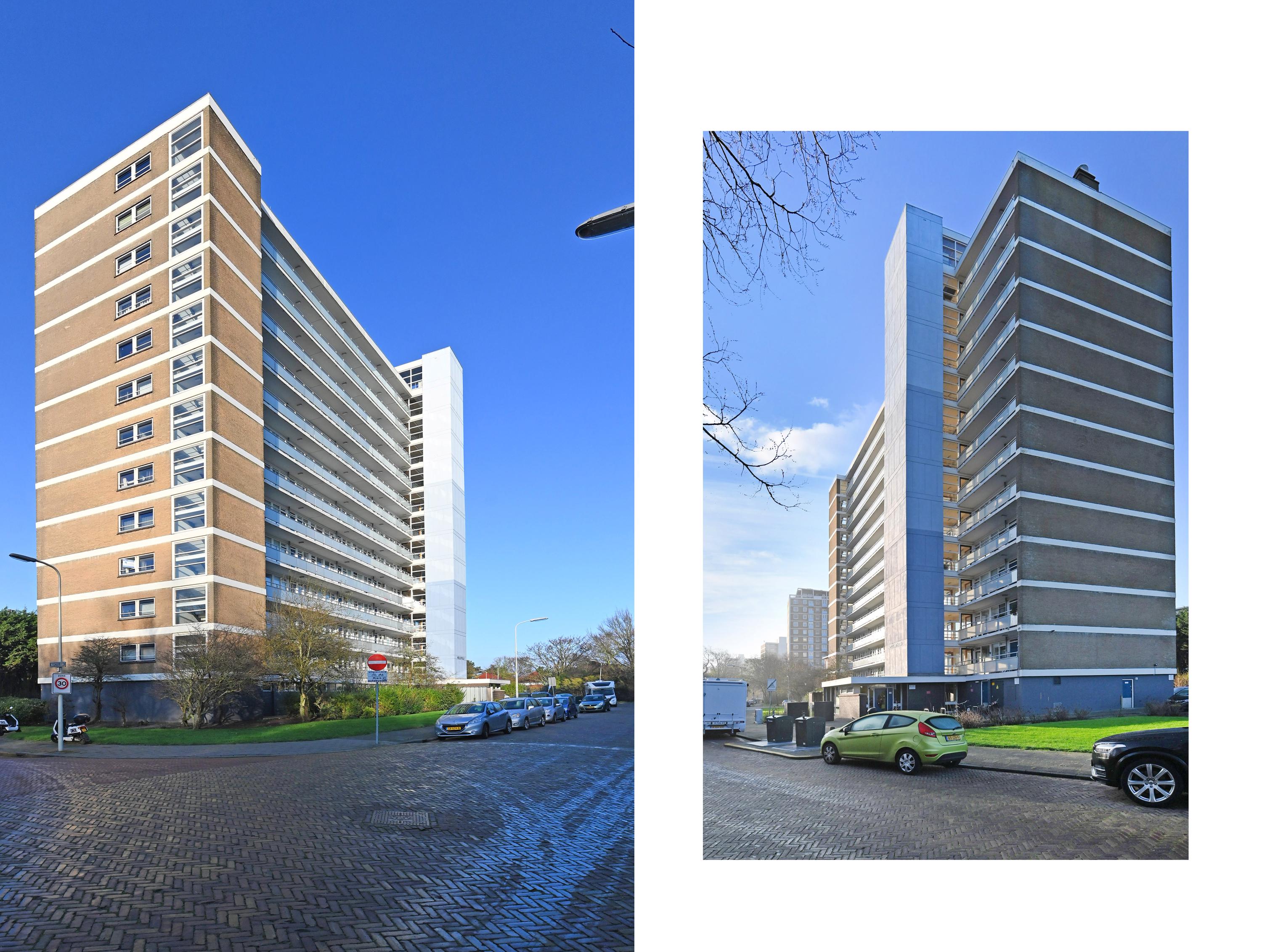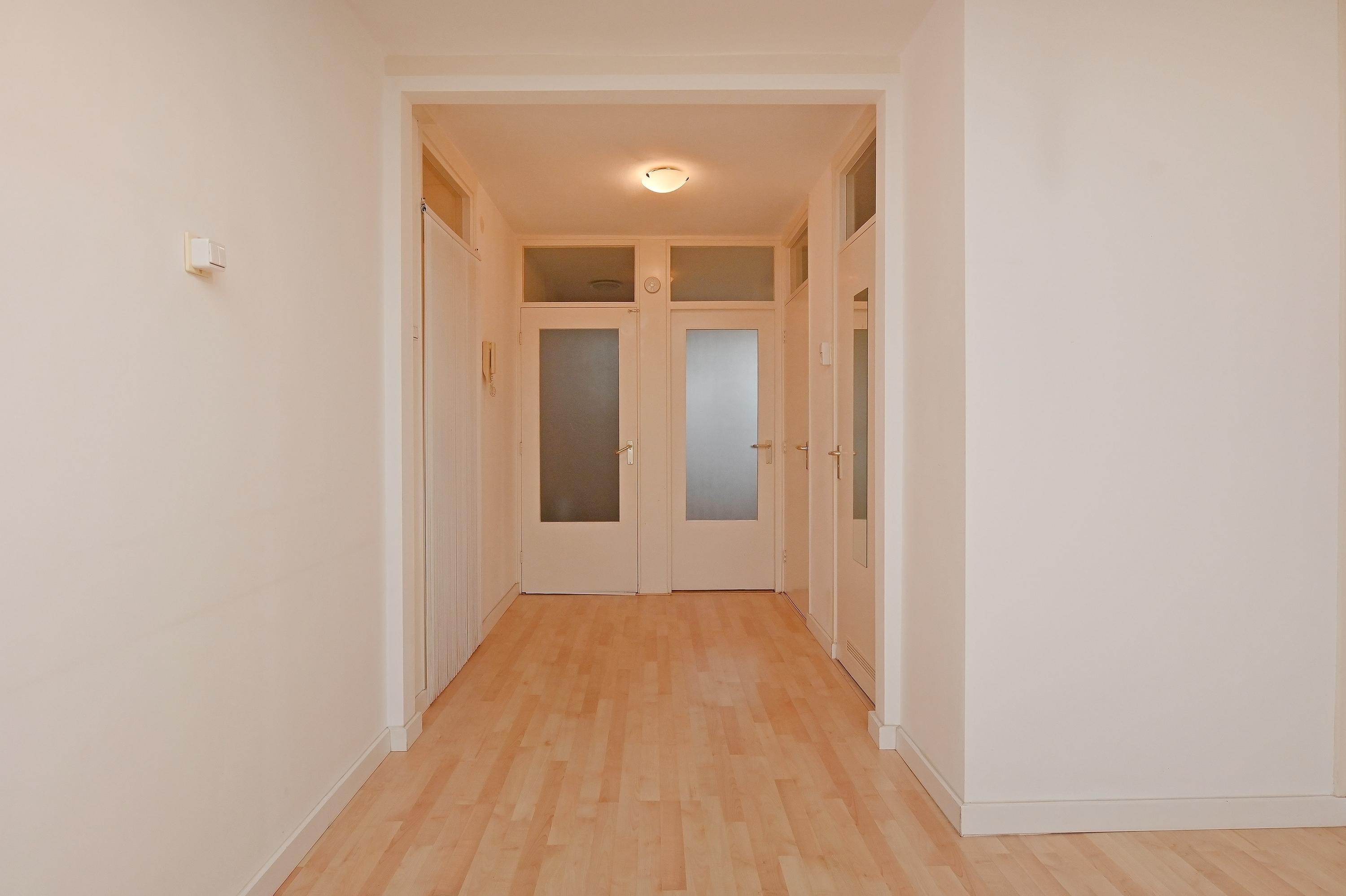 Afgesloten entree met bellentableau, brievenbussen, intercominstallatie en toegang tot lift en trappenhuis. Via de galerij op de vijfde etage bereik je de woning.