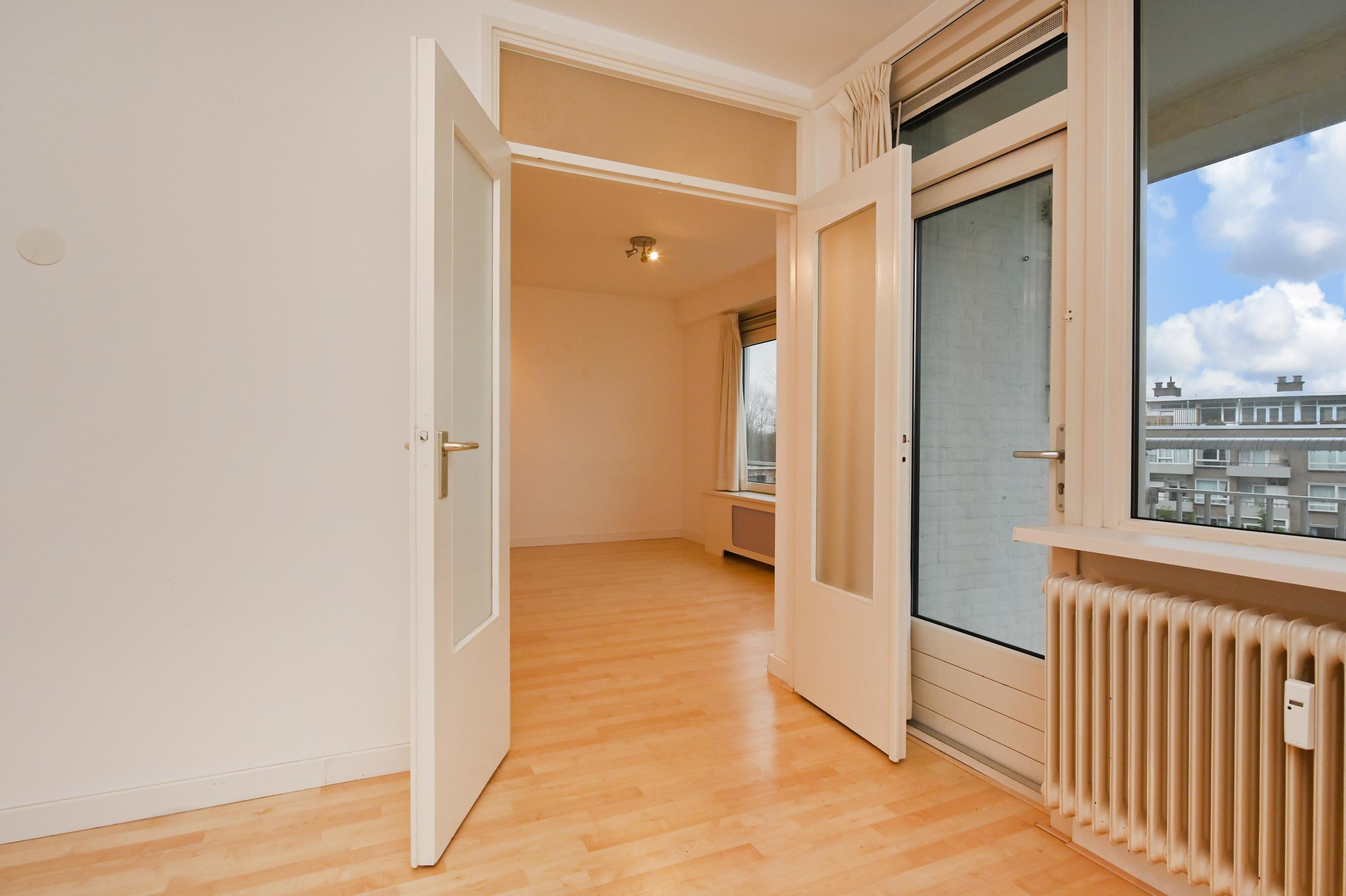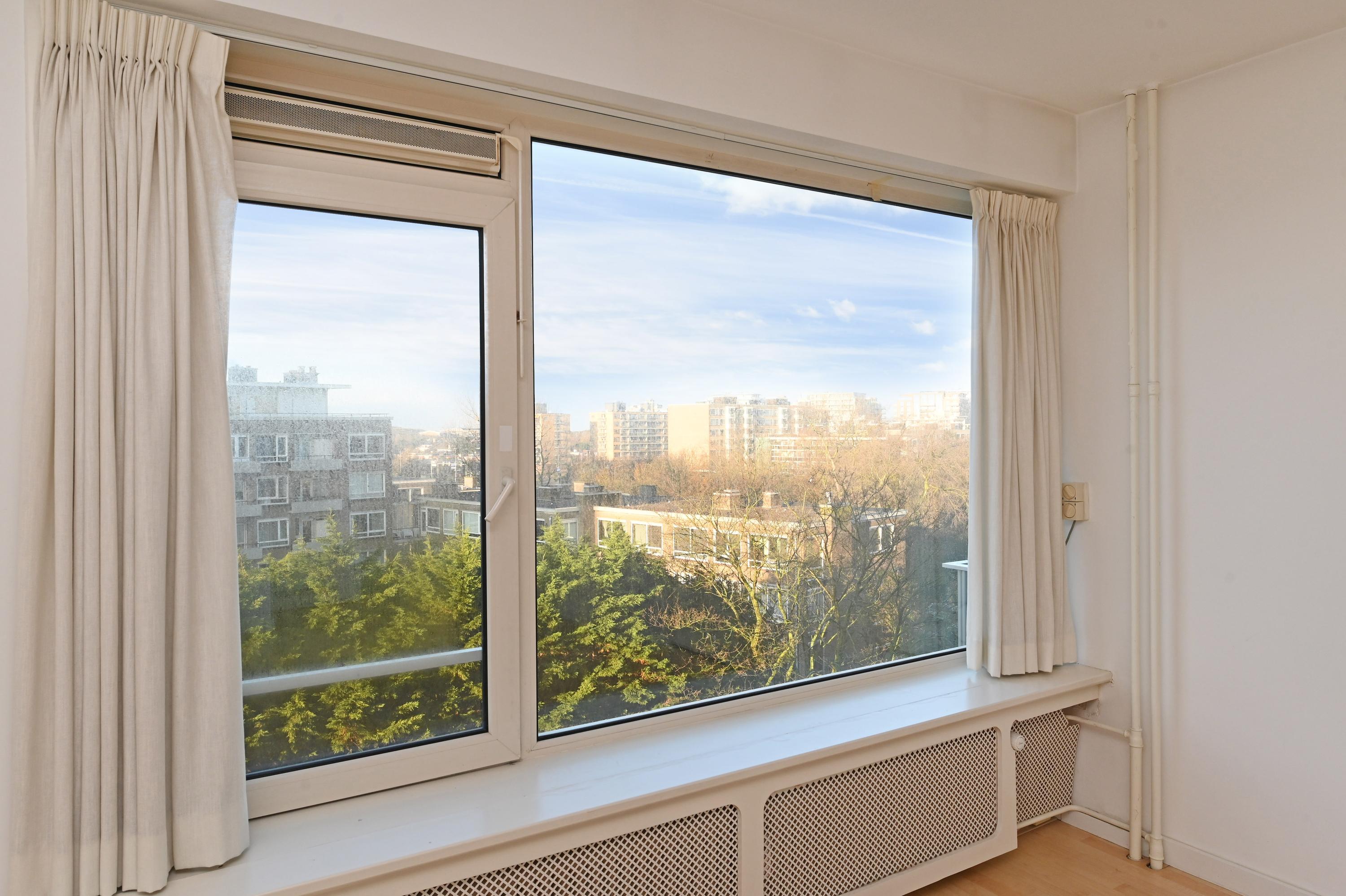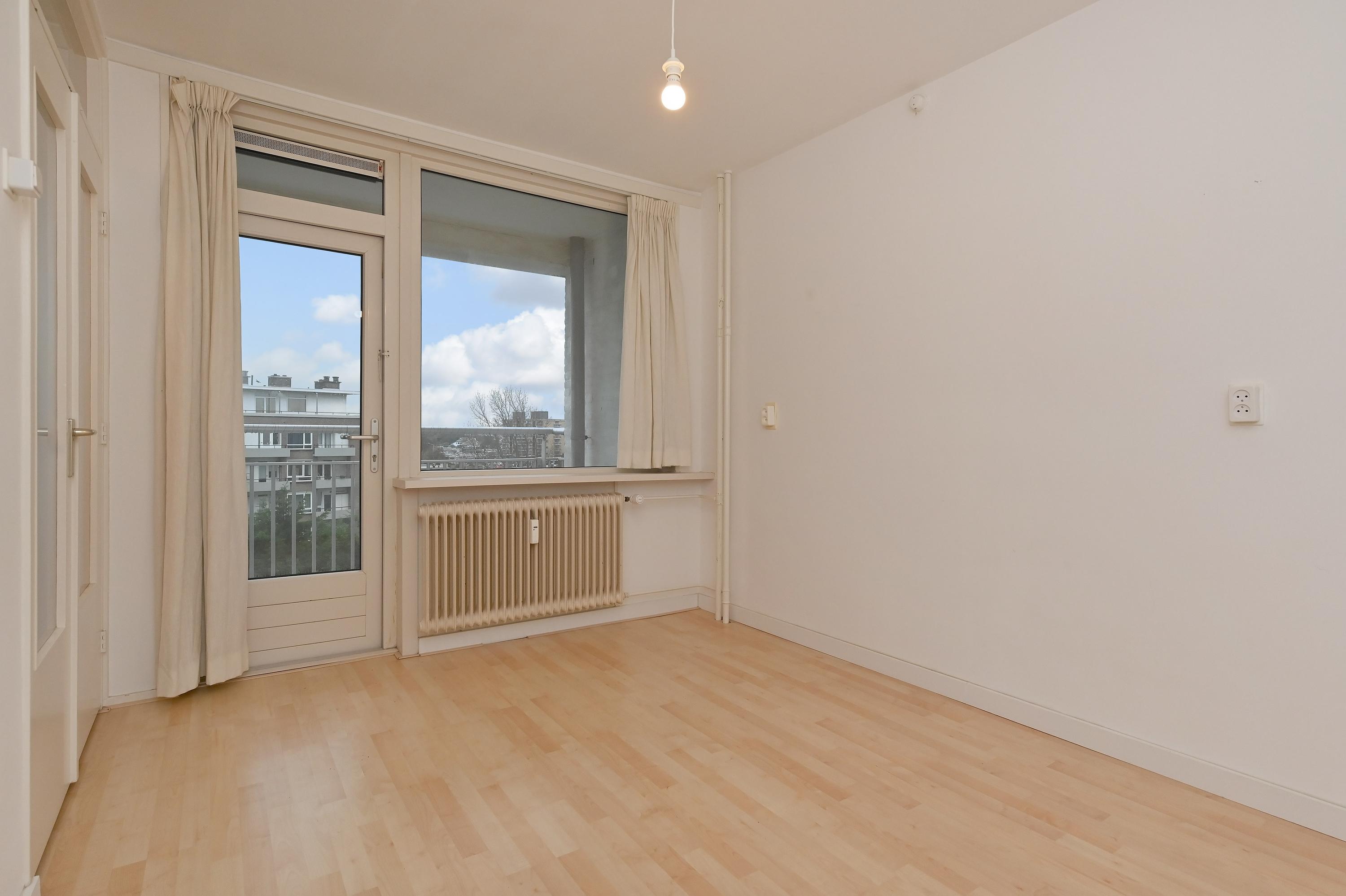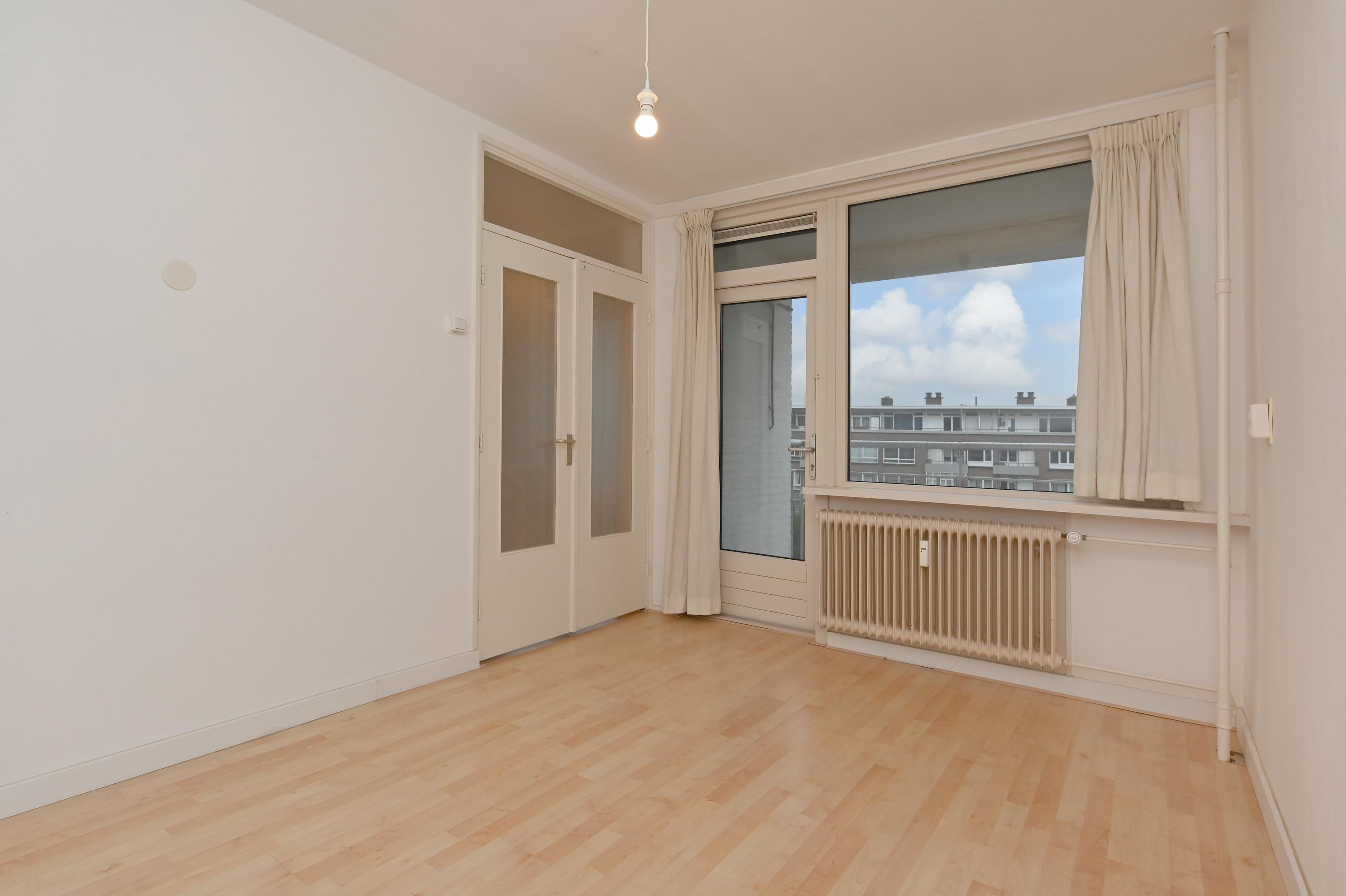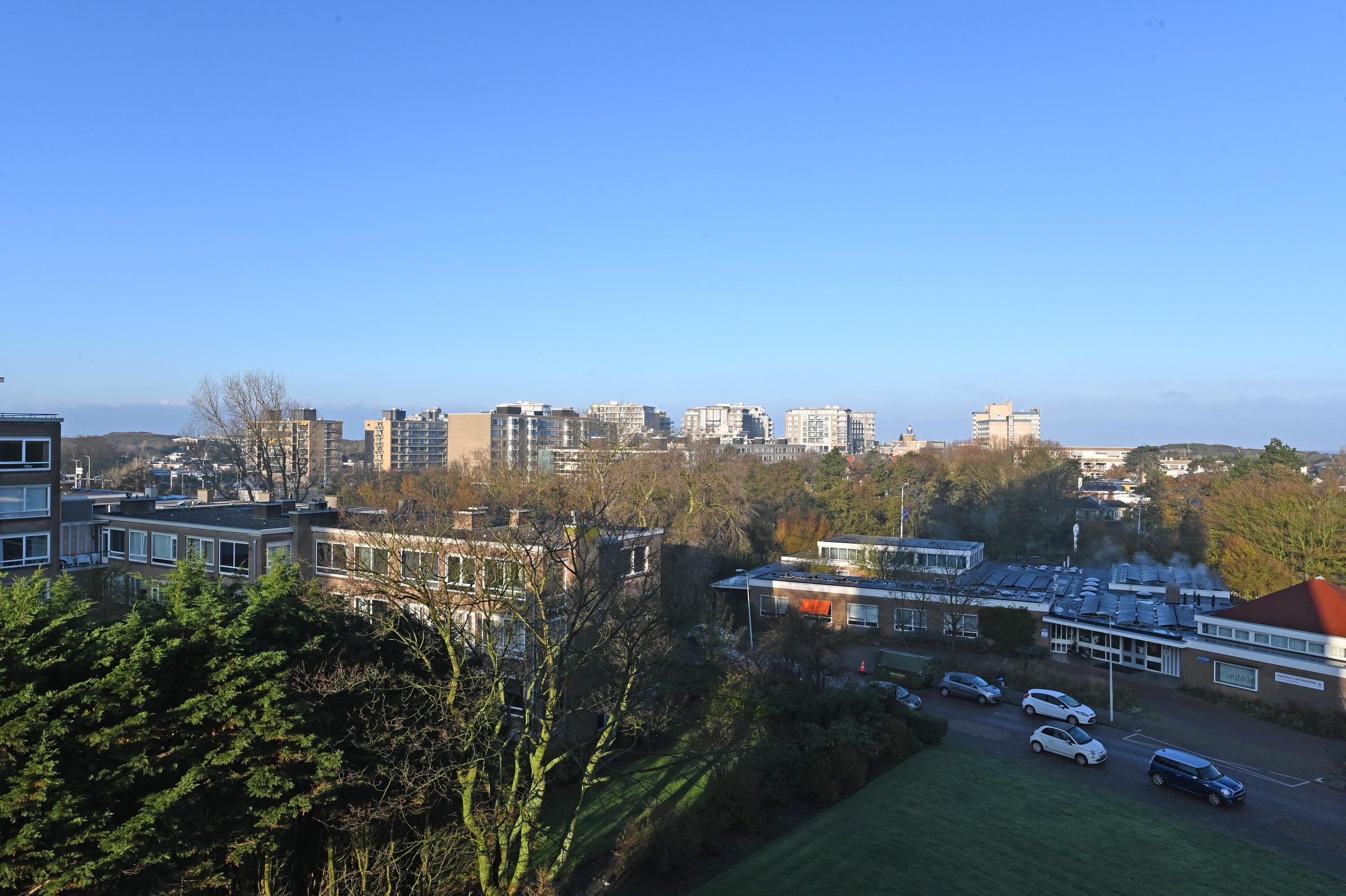 Double doors lead to the generous bedroom, which provides access to the sunny west-facing balcony. A wonderful place to sit and enjoy the unobstructed views over the dunes and parts of Kijkduin.