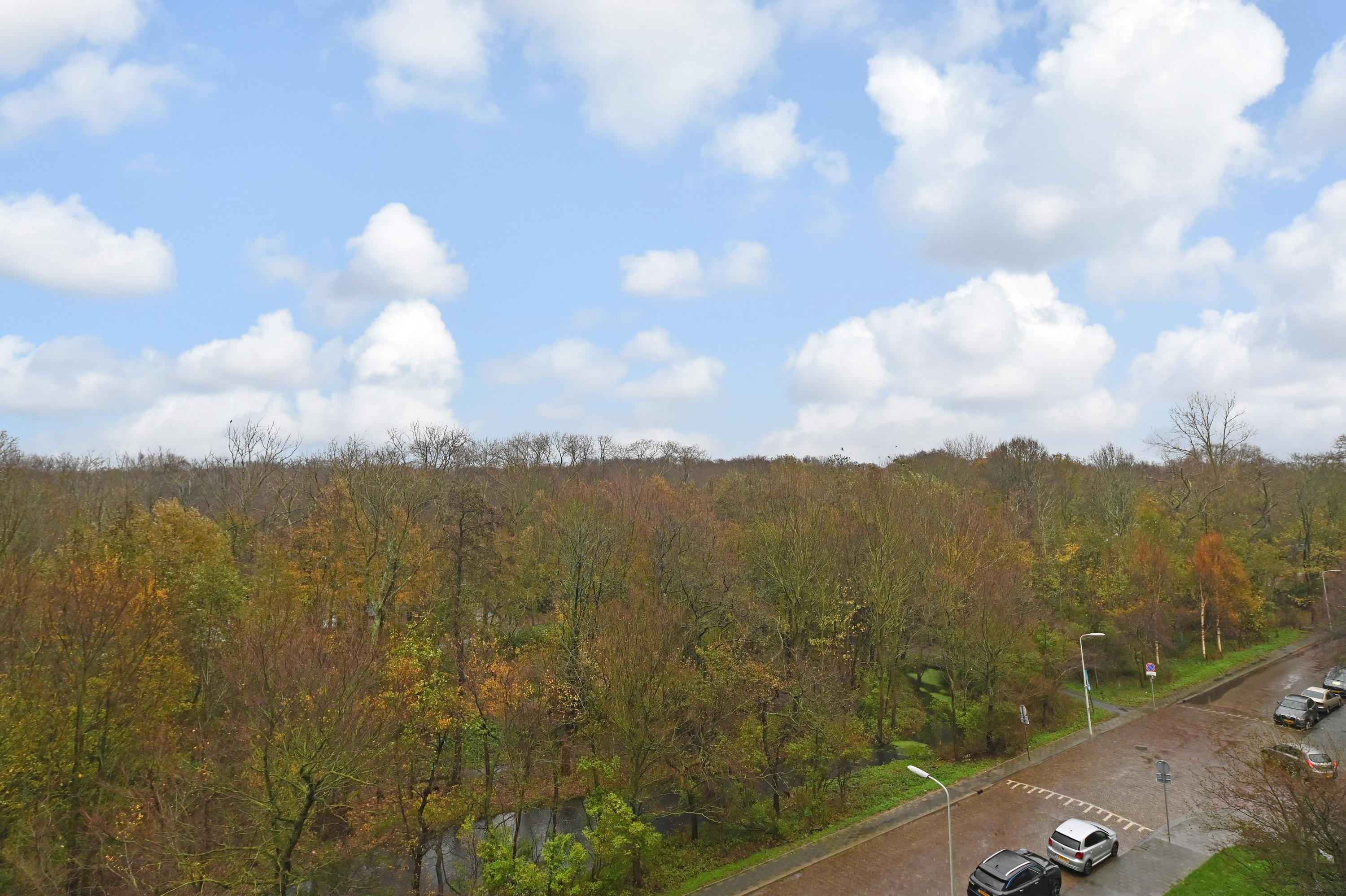 De royale en lichte L-vormige woonkamer beschikt over een vaste kast en biedt een prachtig weids uitzicht. Tevens is er een inpandige berging met de meterkast.